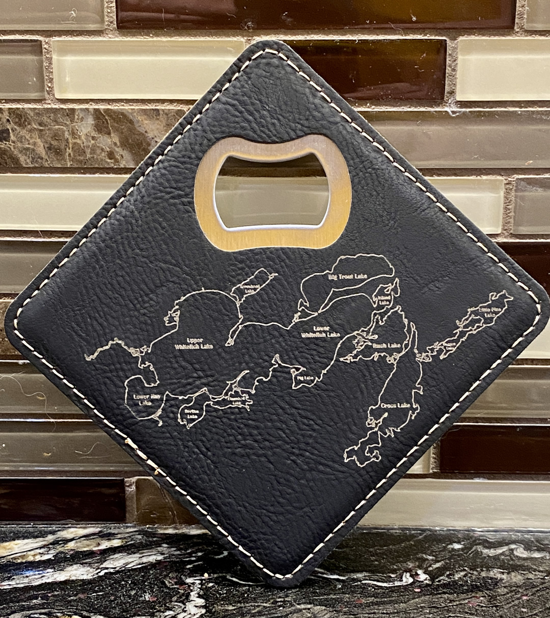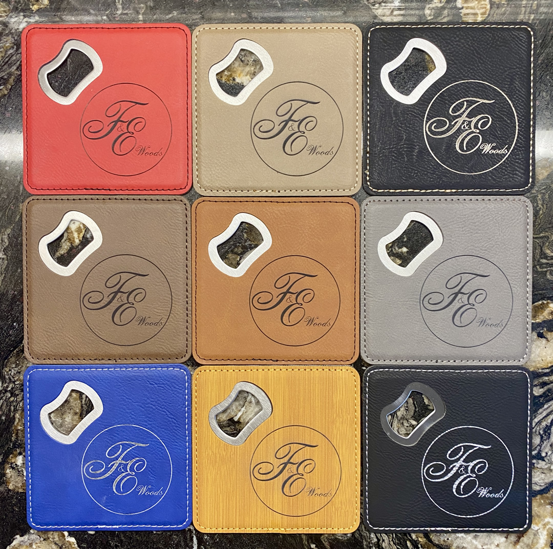 Introducing our Customizable Steel & Leatherette Bottle Opener Coasters, a perfect blend of functionality and style for your home or office. Each set includes four sturdy 4″ x 4″ coasters, designed to double as bottle openers, making them an essential addition to your entertaining arsenal. Made with high-quality steel and elegant leatherette, these coasters not only protect your surfaces but also add a touch of sophistication to your décor.